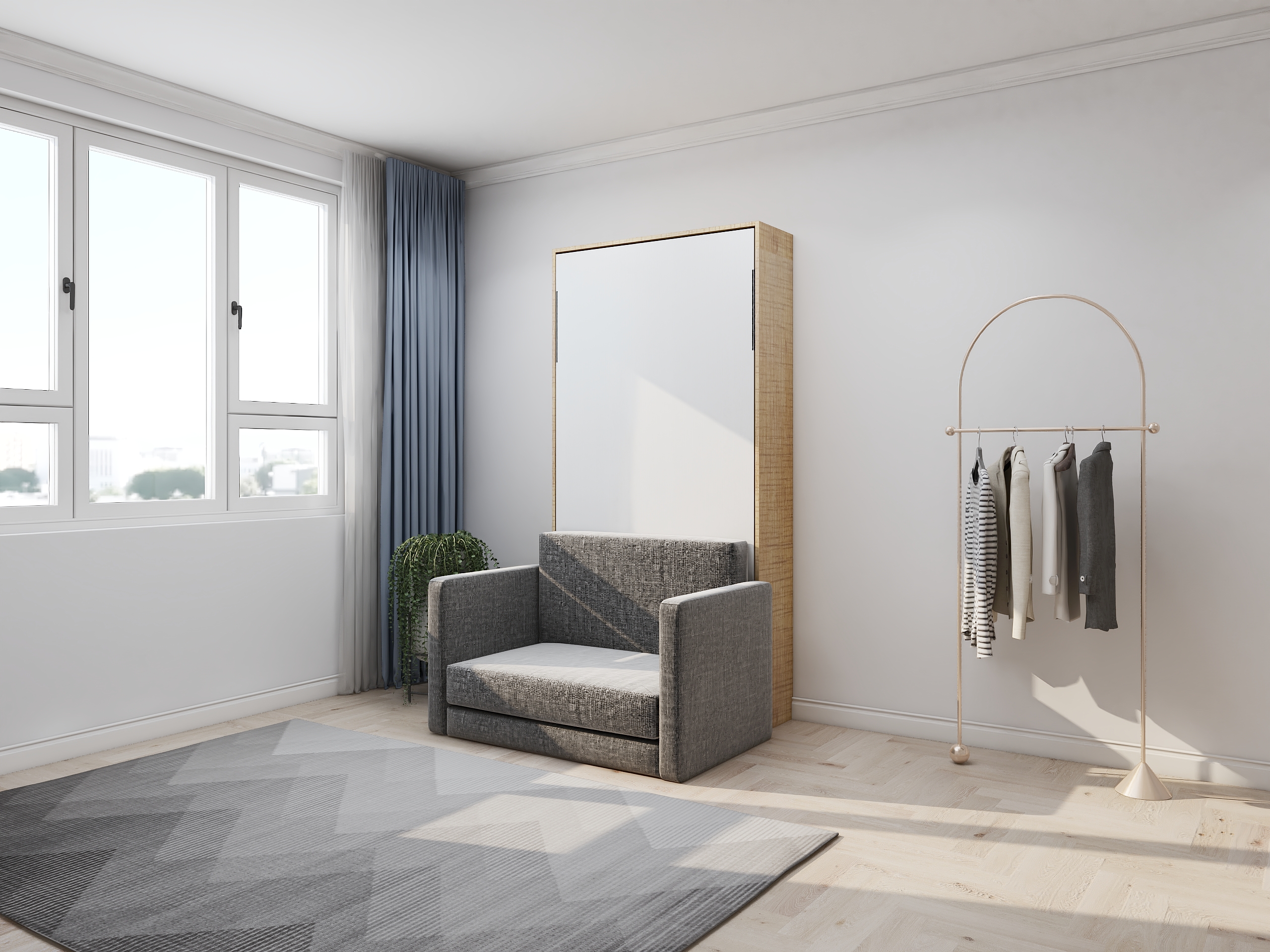 Experience the perfect blend of function and style with our Vertical Single Murphy Wall Bed with Sofa. This innovative design includes a comfortable single-size wall bed that folds vertically and a plush sofa built right in, providing seating by day and a cozy bed by night. Ideal for small apartments, guest rooms, or multi-functional spaces, this bed-sofa combination maximizes your living area without compromising on comfort.