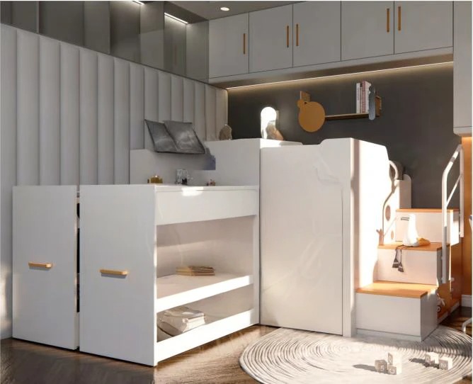 Safe, sturdy stairs offer easy access to the top bunk, allowing younger kids to reach the upper bed with confidence. The design includes protective guardrails on the top bunk for added safety during sleep. Made from high-quality materials, withstands everyday use and maintains long-term durability.