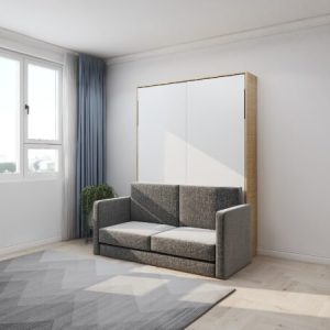 Comfiz Vertical Small Double Murphy Wall Bed With Sofa – Selected Engineered Wood With Melamine Finished